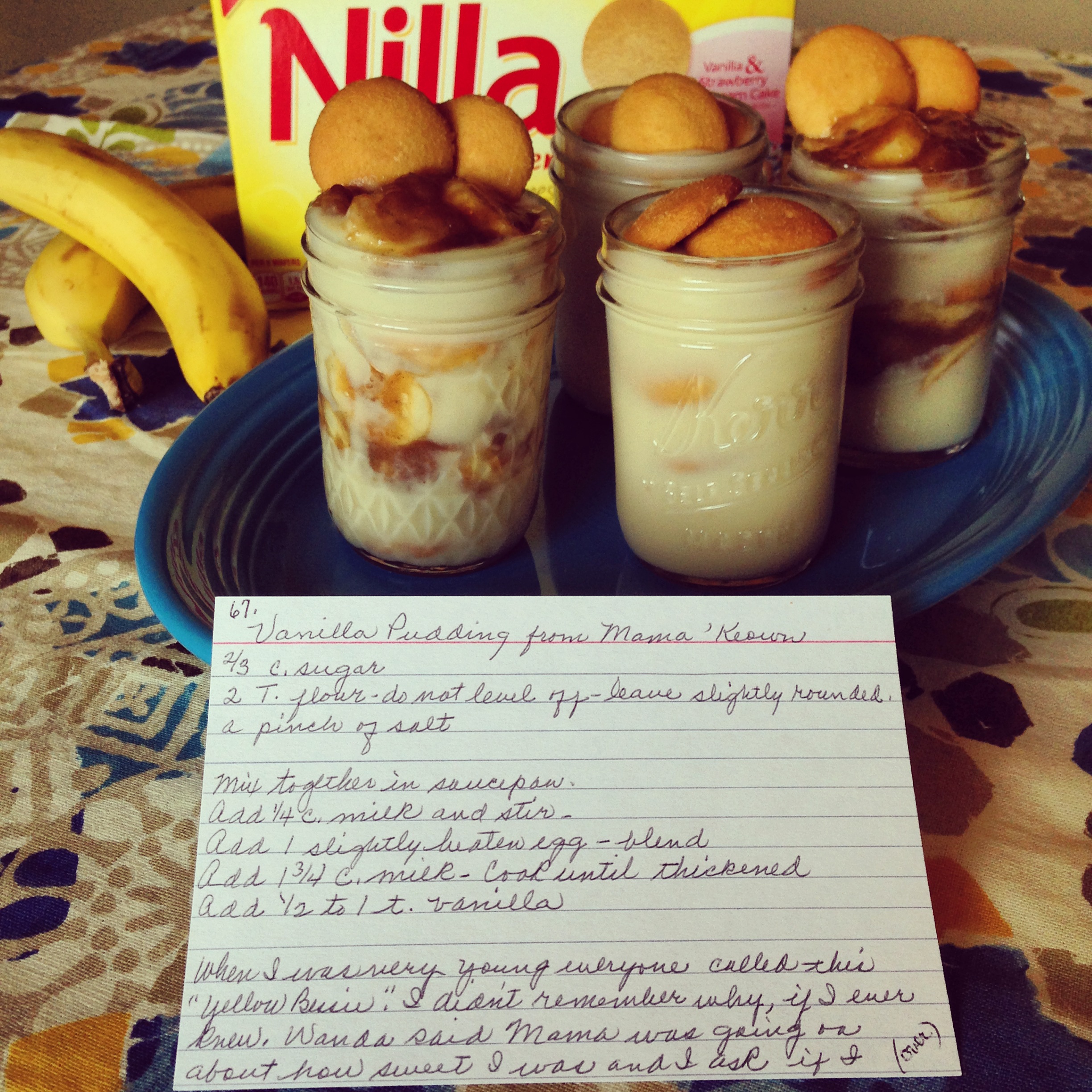 Years ago I asked her for her recipe for her Banana Pudding, she said it was just Bananas, Nilla Wafers, and her Mothers recipe for Vanilla Pudding.