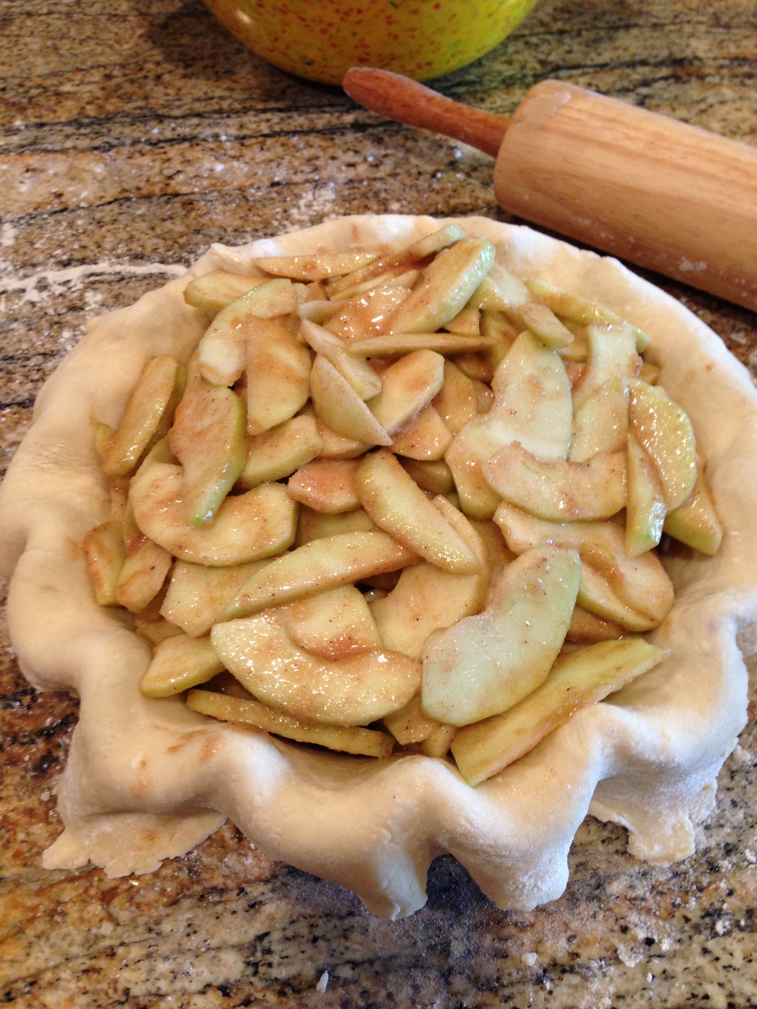 Basically, apple pie is just Apples (usually granny smith) Sugar, Spices (cinnamon, nutmeg, and allspice) a little bit of butter, a little bit of flour and a pinch of salt to balance it all out. Then depending on where you live, sometimes there is cheddar cheese involved, while some prefer Lemon or Orange zest and juice. I’ve even seen a Hatch Green Chili Apple Pie (YUMMY!) I hope to someday try that!