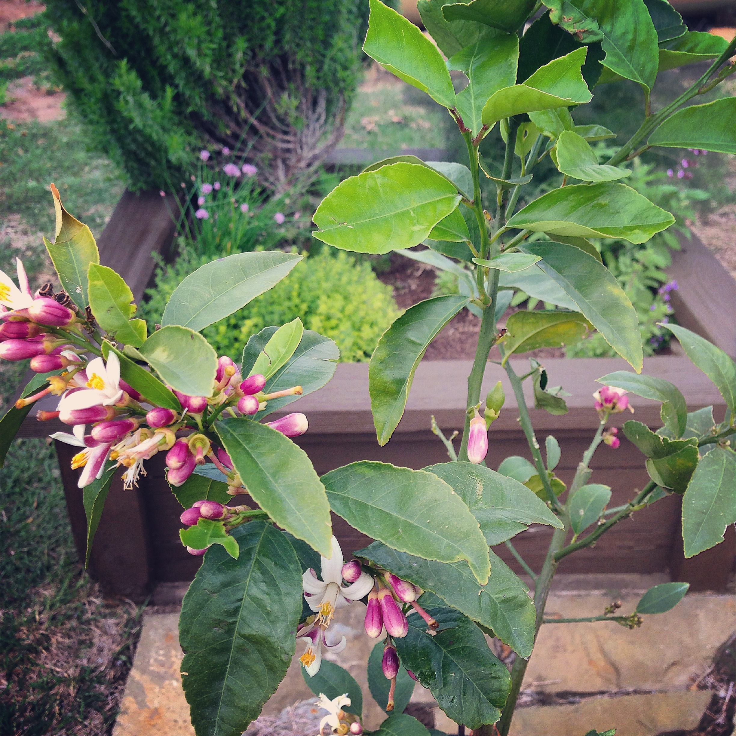 Surprisingly, despite the strong straight line winds that knocked down several large trees, ripped my outdoor ceiling fan off the balcony, and blew in a neighbors garage door…. This little Meyer Lemon Tree held on to all its blooms and little baby lemons. It’s funny how Mother Nature works sometimes…