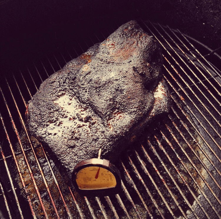 Once the smoker is up to temperature (225-250) place the brisket inside and let it smoke for 6 hours.
