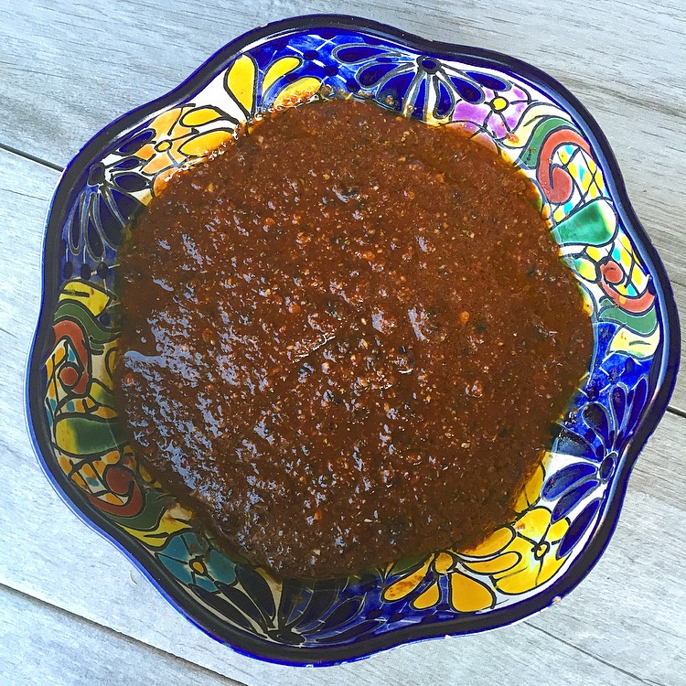 In a small dry skillet toast the dried ancho chiles for about 1 minutes until they smell fragrant and begin to puff up slightly. All the chiles to cool slightly then remove the stems and seeds. Place the toasted chiles, citrus juice, garlic, onion, chipotle chiles, spices, soy sauce and police oil in a food processor or blends and puree until it has the same texture of salsa.