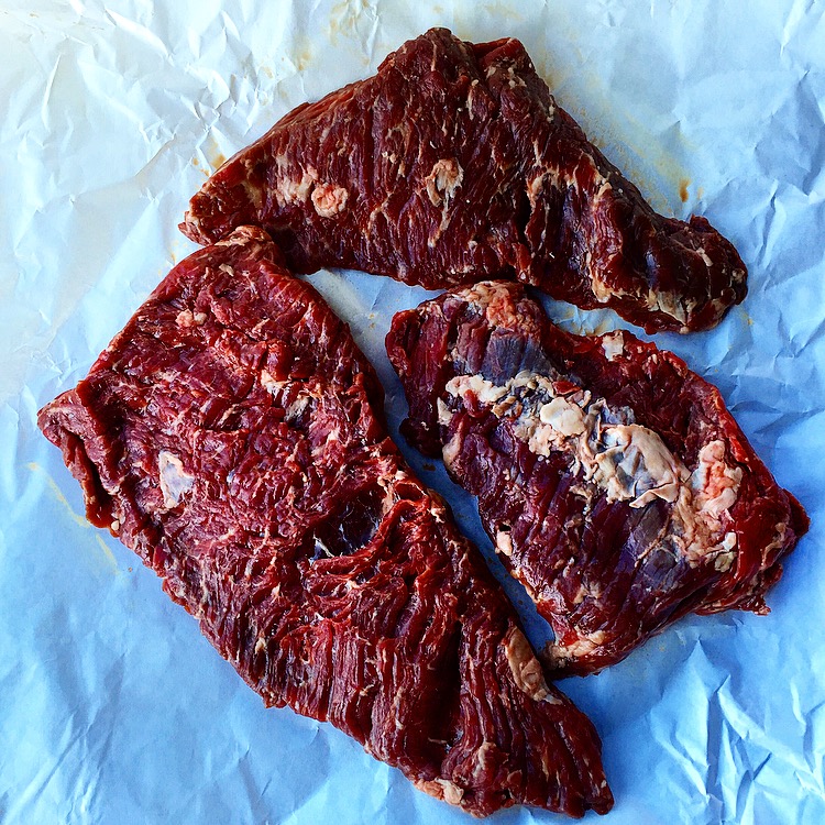 - There are 3 different cuts of beef that could be used Skirt Steak, Flank Steak, and Flap Steak. After talking to the butcher he highly recommended the flap steak (which ironically was the cheapest).